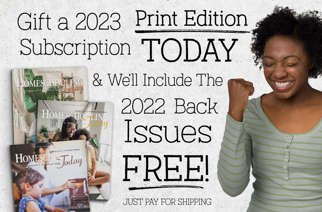 ★★★★★“As a new homeschooling family, we find Homeschooling Today to be the place for us to find resources, ideas, and help in our new journey. The timely articles and resources available both in print and on the web were exactly what we needed to help us get started.”