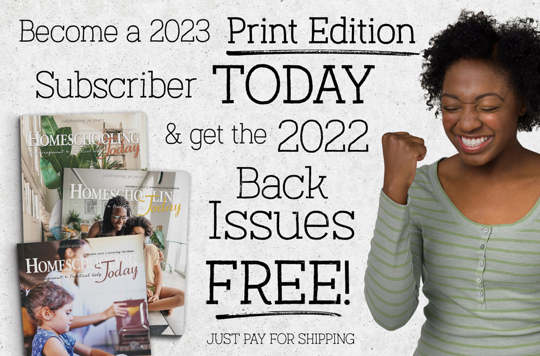 ★★★★★“As a new homeschooling family, we find Homeschooling Today to be the place for us to find resources, ideas, and help in our new journey. The timely articles and resources available both in print and on the web were exactly what we needed to help us get started.”